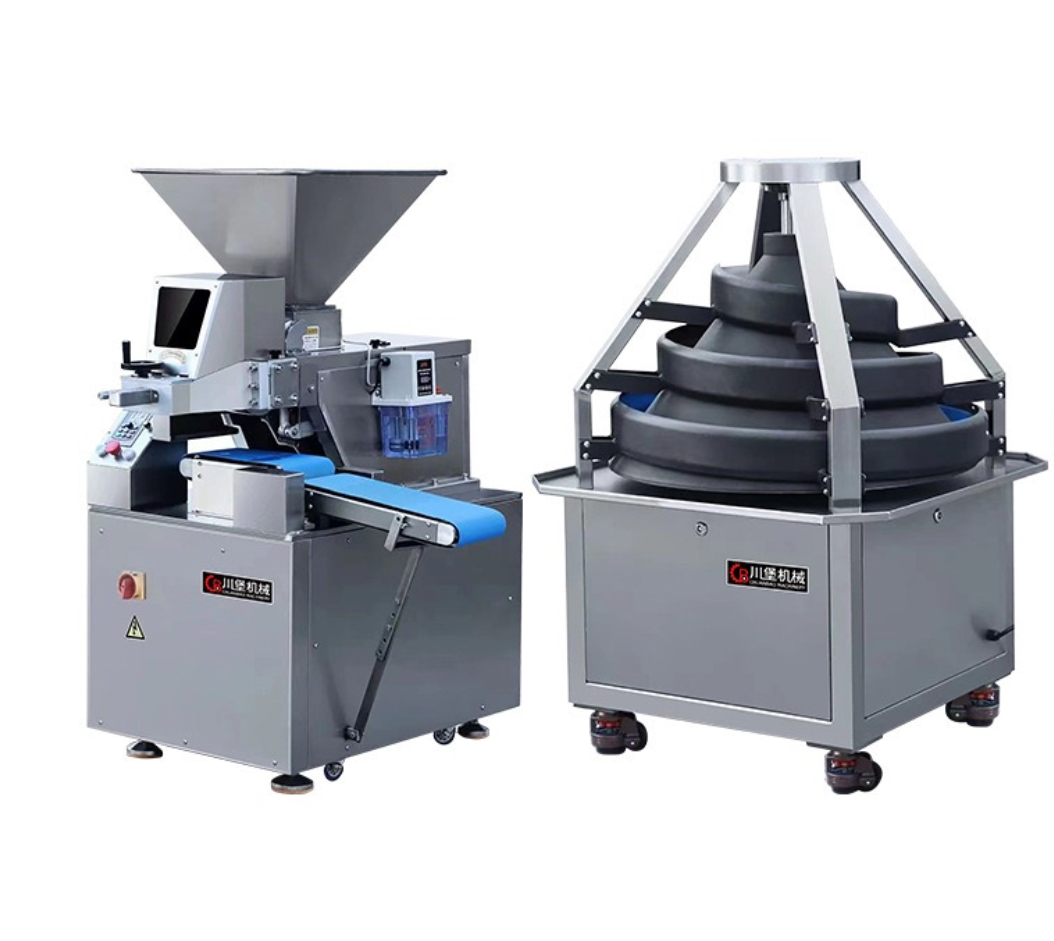 The continuous dough divider allows for quick portioning of dough into pieces, with a capacity of up to 4000 pieces per hour.