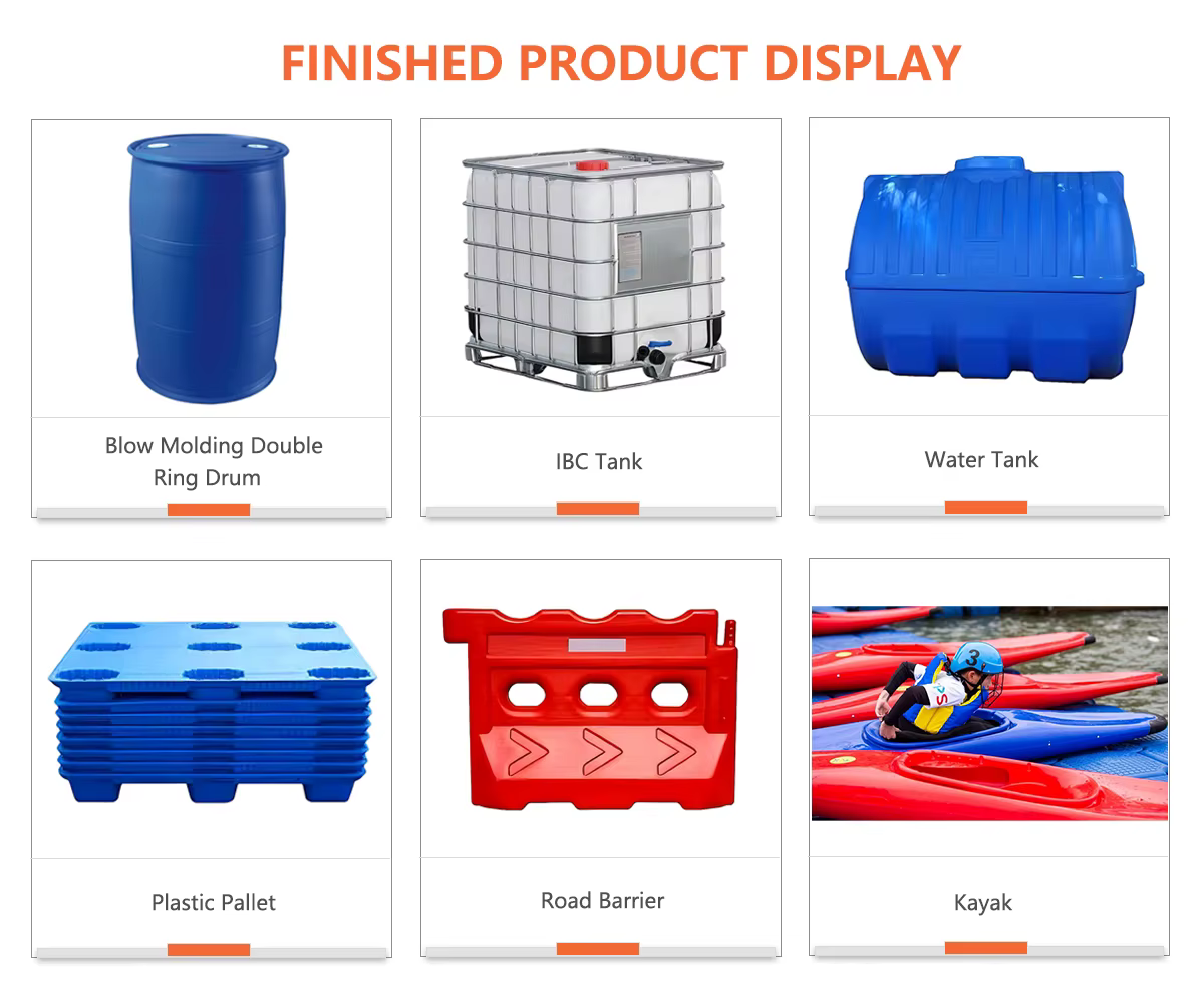 The machine is designed to work with HDPE (High-Density Polyethylene) for producing water tanks.