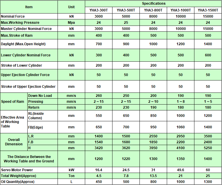 This press is suitable for various metal forming processes including fine blanking, cold extrusion, and stamping of metallic and non-metallic parts.