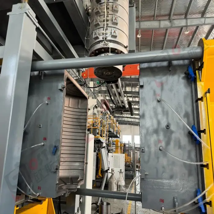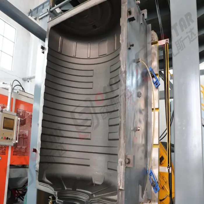 This machine is specifically designed for producing plastic water storage tanks, primarily using high-density polyethylene (HDPE) or similar materials.