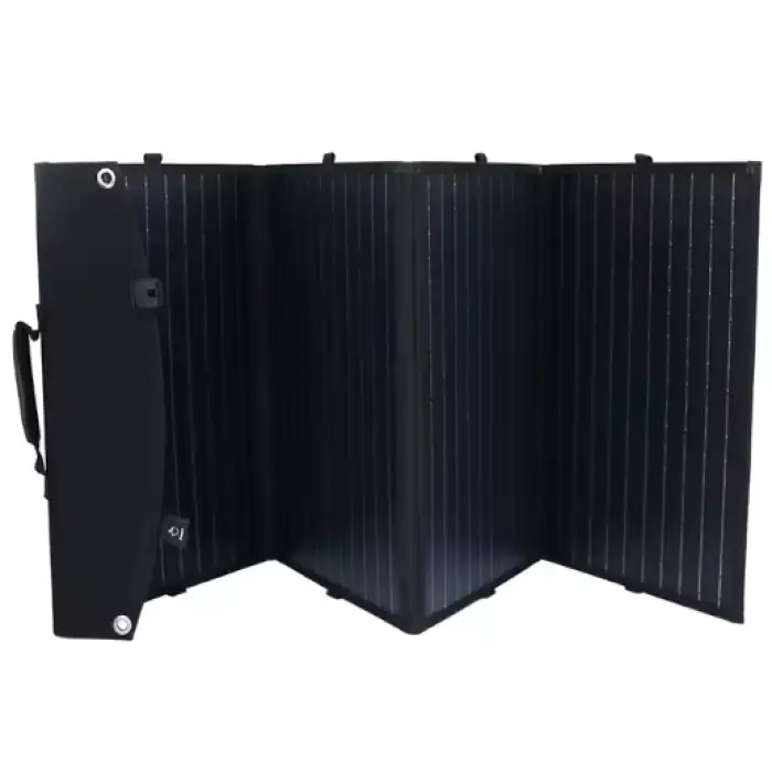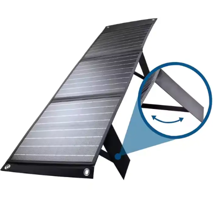 The solar panel has a peak power output of 100W, providing efficient charging for your devices.