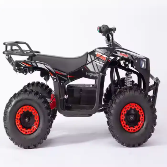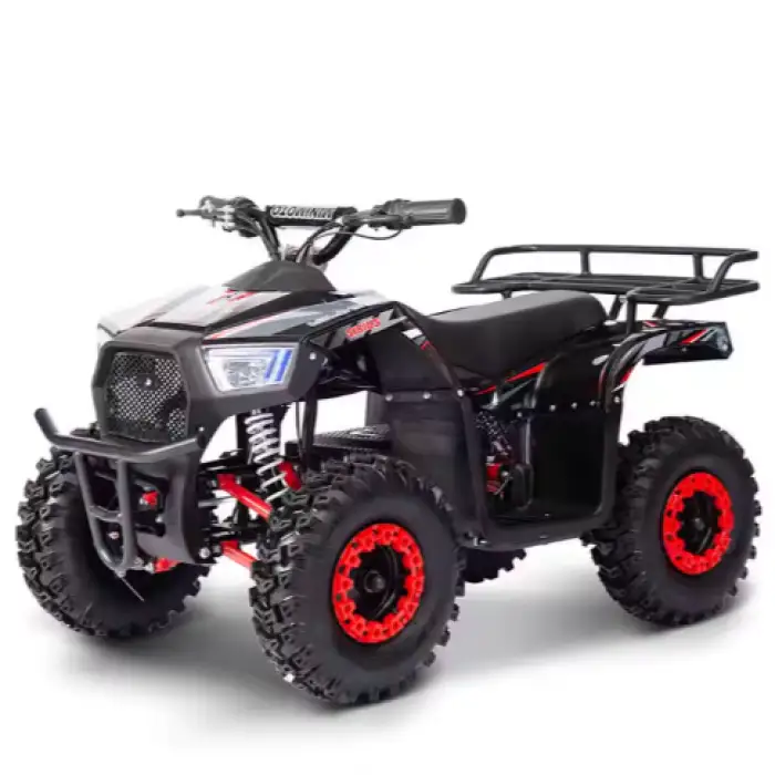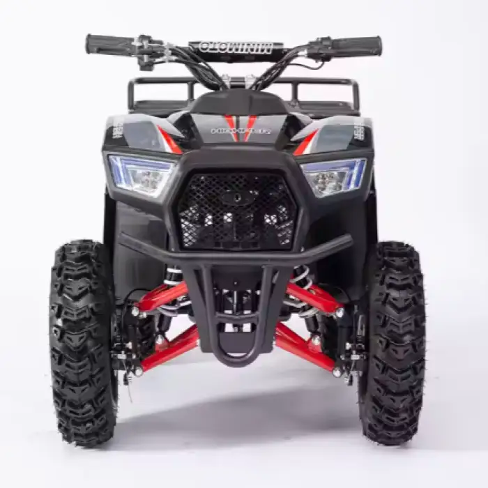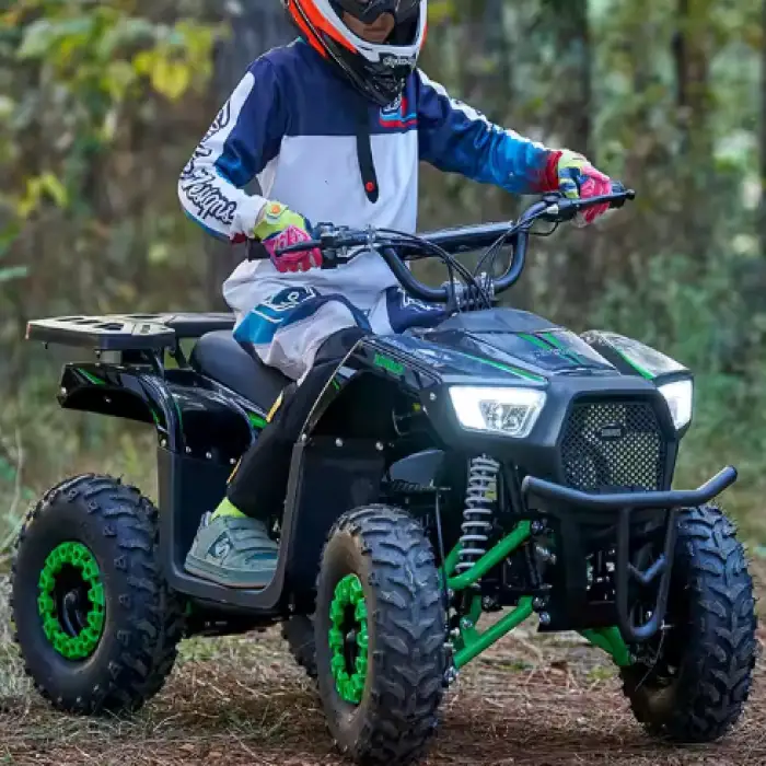 The quad bike is equipped with front and rear disc brakes for safe stopping.