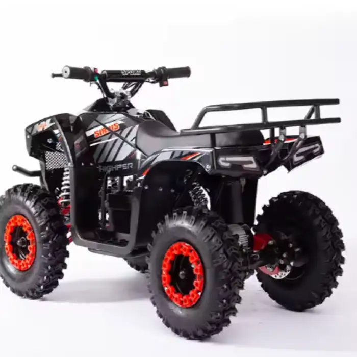 The quad bike includes front and rear disc brakes and a differential lock for enhanced safety.