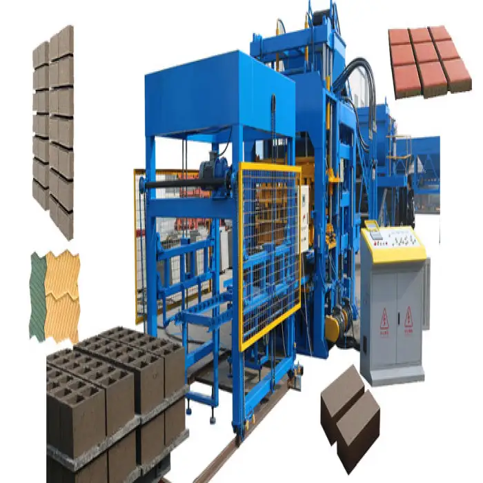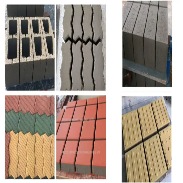 The machine can produce various types of blocks including hollow blocks, solid bricks, paver bricks, and curbstones.