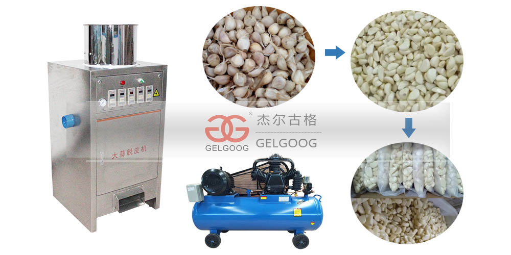 Advantages include a high peeling rate, no damage to garlic, long storage time, compact structure, and easy repair.