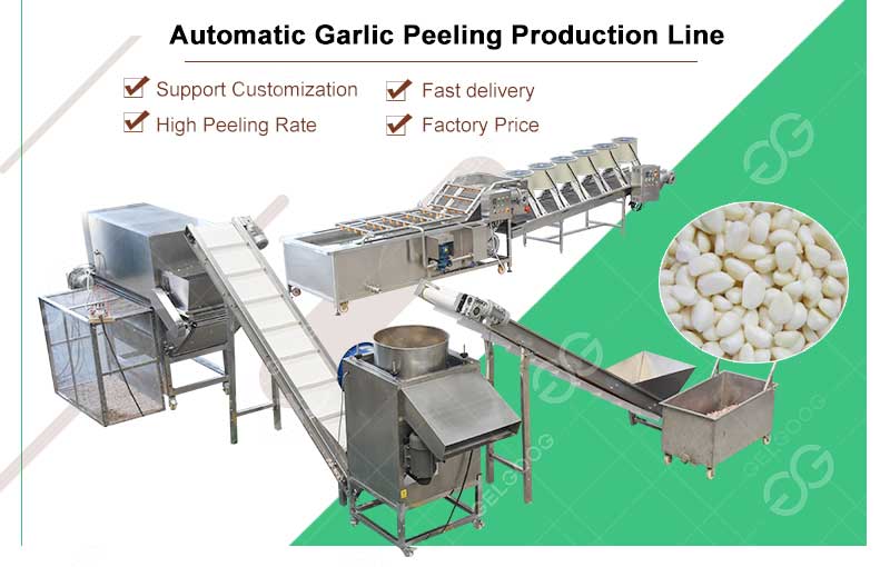 The machine is designed to be suitable for different garlic clove sizes and automatically separates the garlic peel from the cloves.