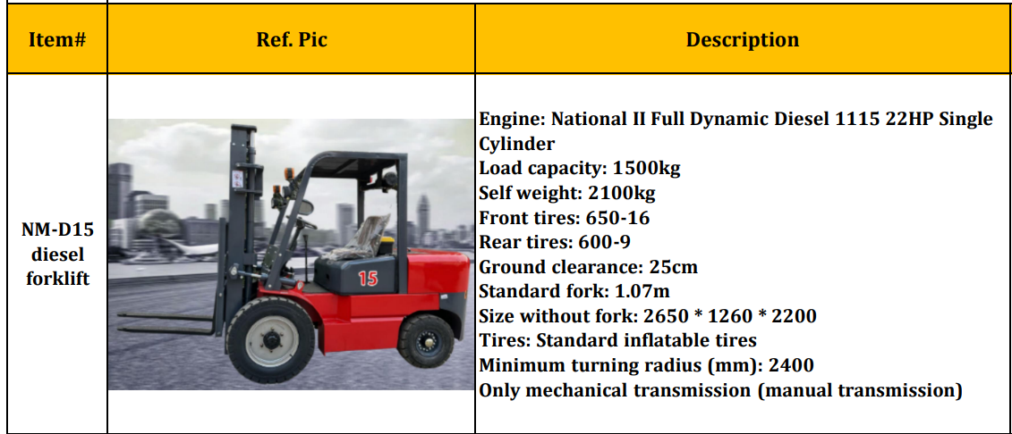The forklift is powered by a National II Full Dynamic Diesel 1115 22HP engine, which provides consistent power and performance.