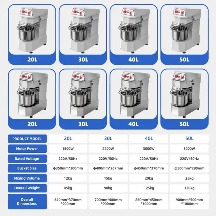 This mixer is suitable for commercial bakeries, snack food factories, flour mills, catering services, and food canneries.