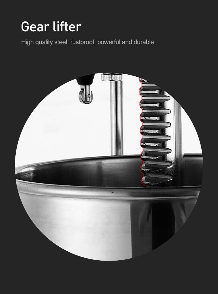 15L refers to the hopper volume (15 liters). The actual weight depends on your recipe density, but as a rough guide 15 liters is approximately up to 15 kg of sausage mix. Example: at 85 g per sausage you could make roughly 175–180 links per full hopper.