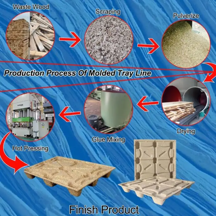 The 1600T Wood Sawdust Pallet Production Line is designed to produce high-quality wood chip pallets suitable for shipping, storage, construction, and industrial applications.
