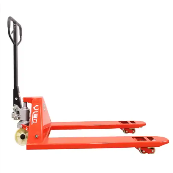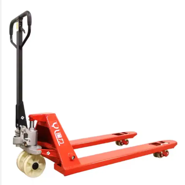 The hand pallet truck can handle standard-sized pallets typically used in various industries, ensuring compatibility with your load.