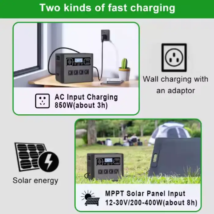 It uses MPPT (Maximum Power Point Tracking) technology for efficient solar charging.