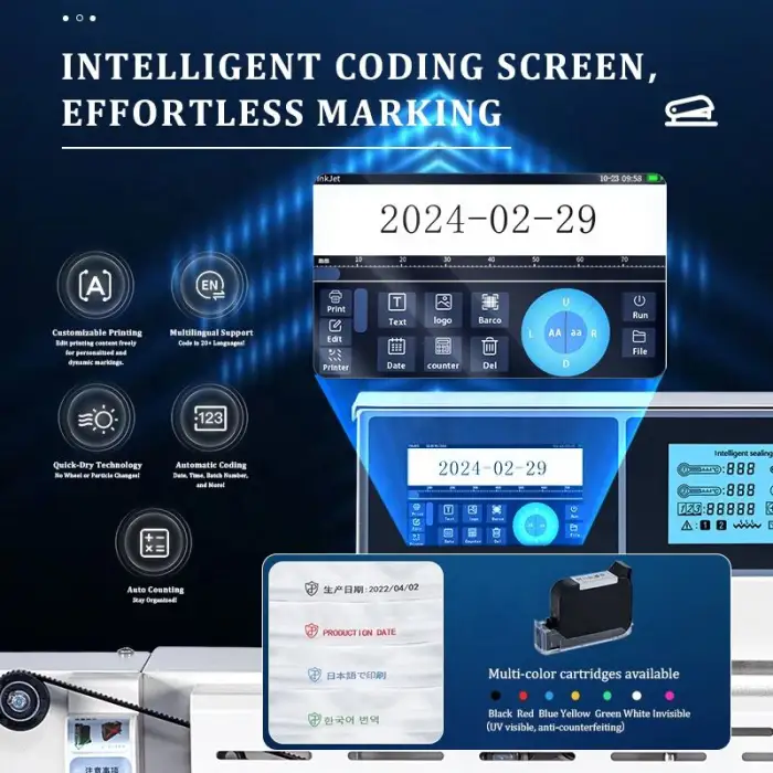 The 210AP TEPPS machine features fast and efficient date printing, allowing for quick operation in your production line.