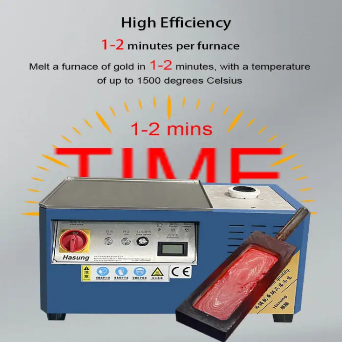 The melting time is approximately 2-3 minutes for most metals, making it very efficient.