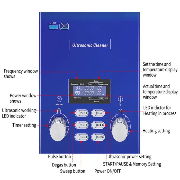 The machine operates at a high frequency of 37kHz, which is effective for thorough cleaning.