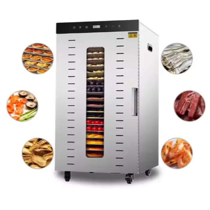 The food dryer has a large capacity of 24 trays, allowing you to dry multiple batches of fruit at once.