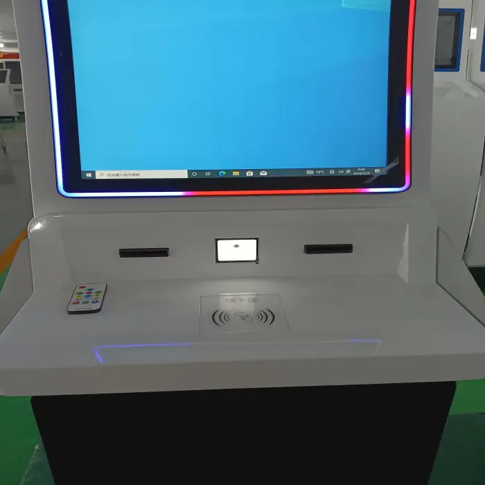 This kiosk is ideal for airports, hospitals, subway stations, and banks for self-service transactions and ticket dispensing.