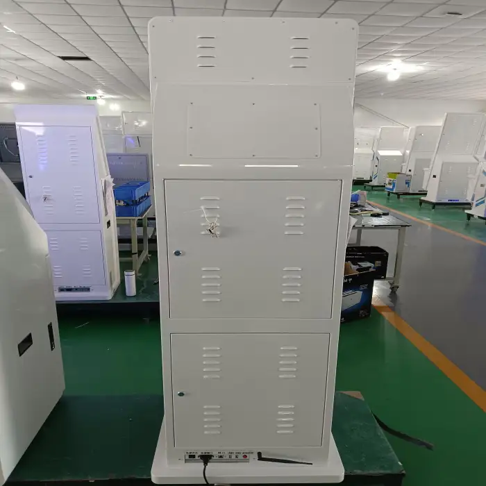 The kiosk is designed primarily for indoor use in high-traffic areas such as airports, hospitals, and banks. Outdoor use may require additional protective measures.