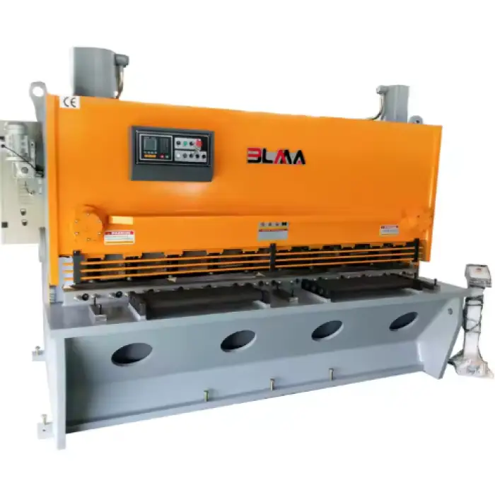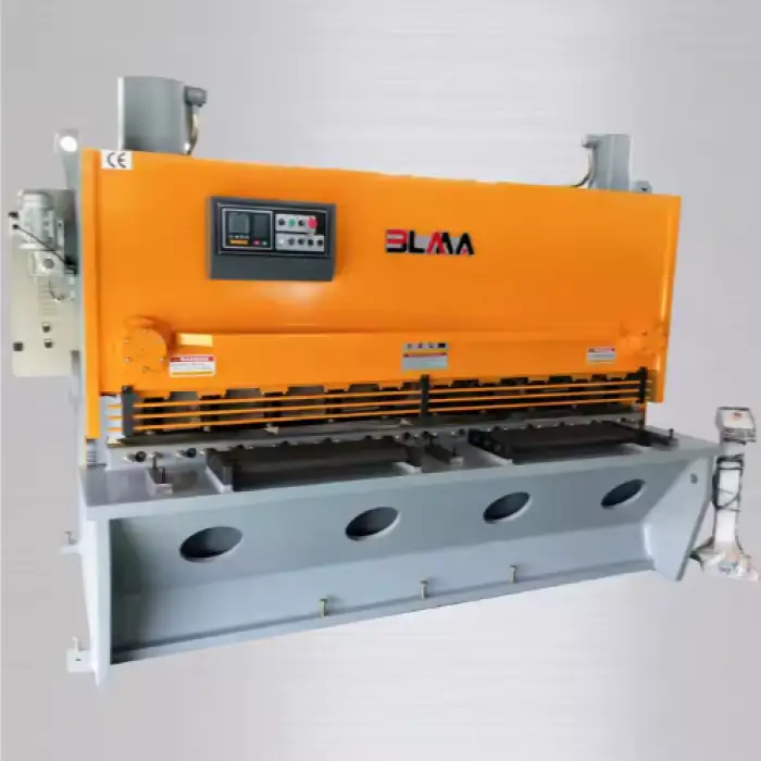 The machine is designed to cut metal sheets, including steel, stainless steel, and carbon steel.