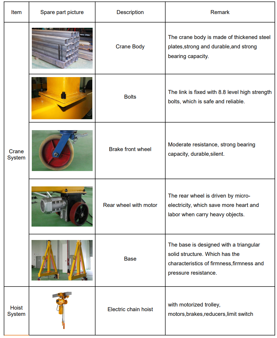 15. Are spare parts available for the gantry crane?