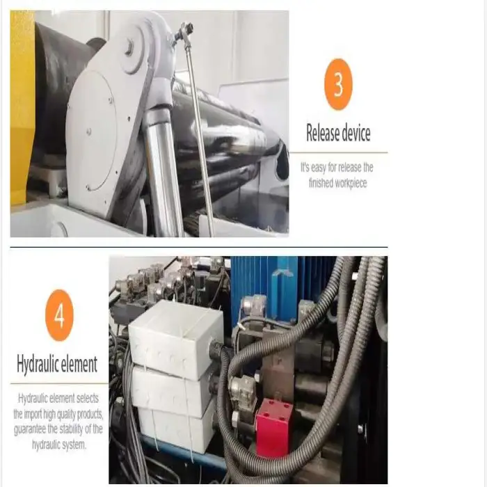 The machine features electric elements from French Schneider, a Siemens motor from Germany, and a PLC from Japan Mitsubishi.