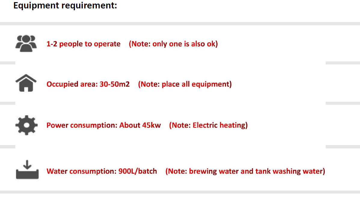The power requirement for the 300 Litre Beer Equipment varies based on the specific model and features, but it generally requires a standard industrial power supply.