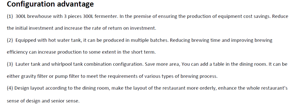 You can brew a variety of beer styles, including ales, lagers, stouts, and IPAs, with the 300 Litre Beer Equipment.
