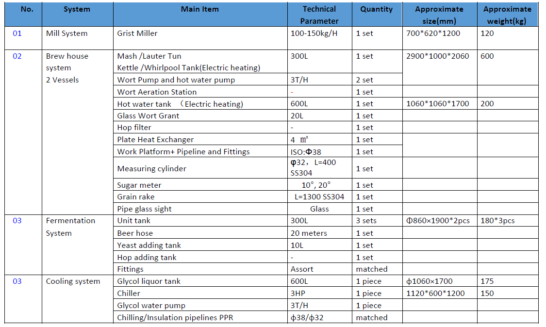 1. What is the capacity of the 300 Litre Beer Equipment?