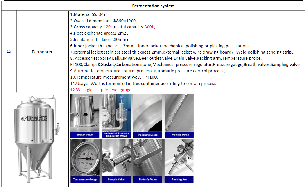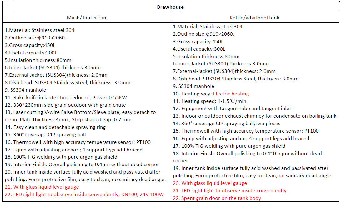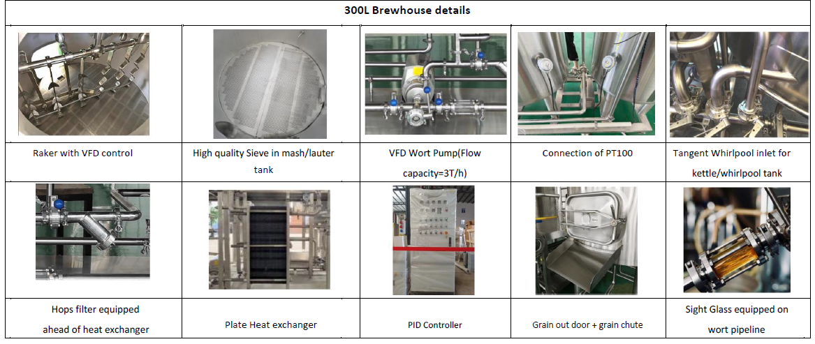 The 300 Litre Beer Equipment generally includes safety features such as pressure relief valves, temperature controls, and emergency shut-off systems.