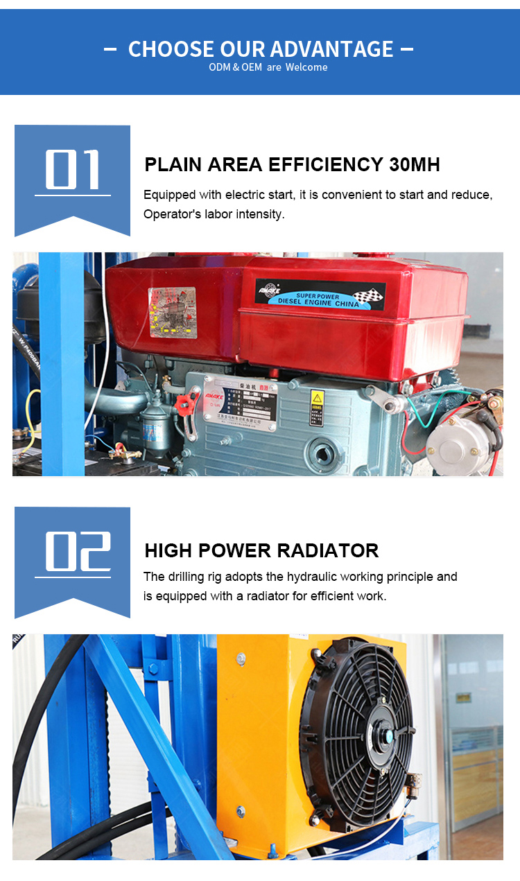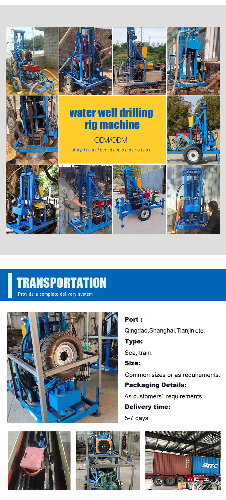 Standard and optional accessories vary by order but commonly include drill rods, drill bits, mud pumps, winches, casing equipment and toolkits. Contact sales for a full list of included items and optional packages.