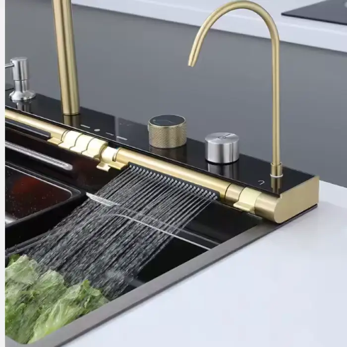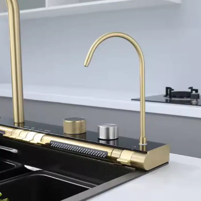The faucet features a stunning nano brushed gold finish that adds an elegant touch to your kitchen.