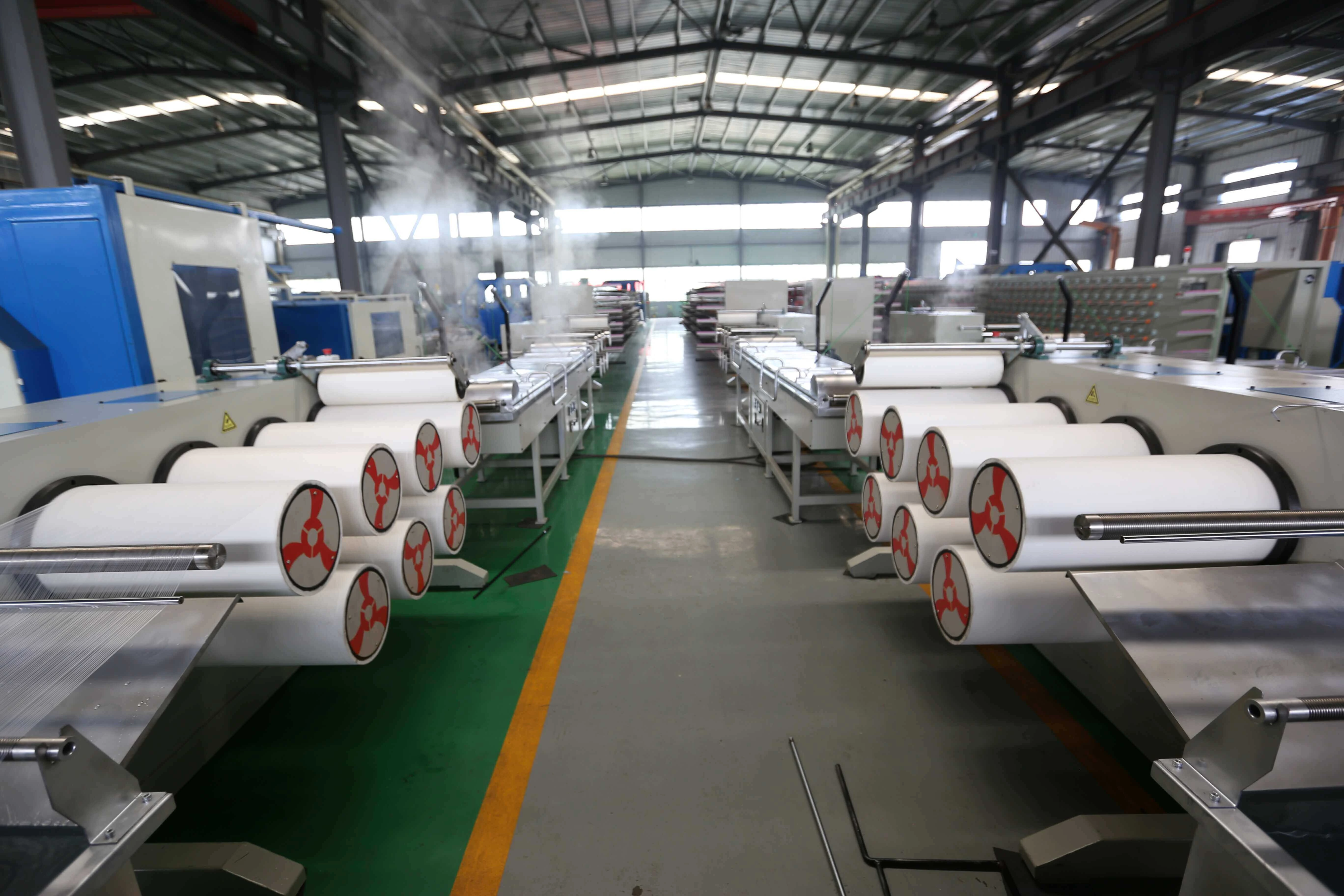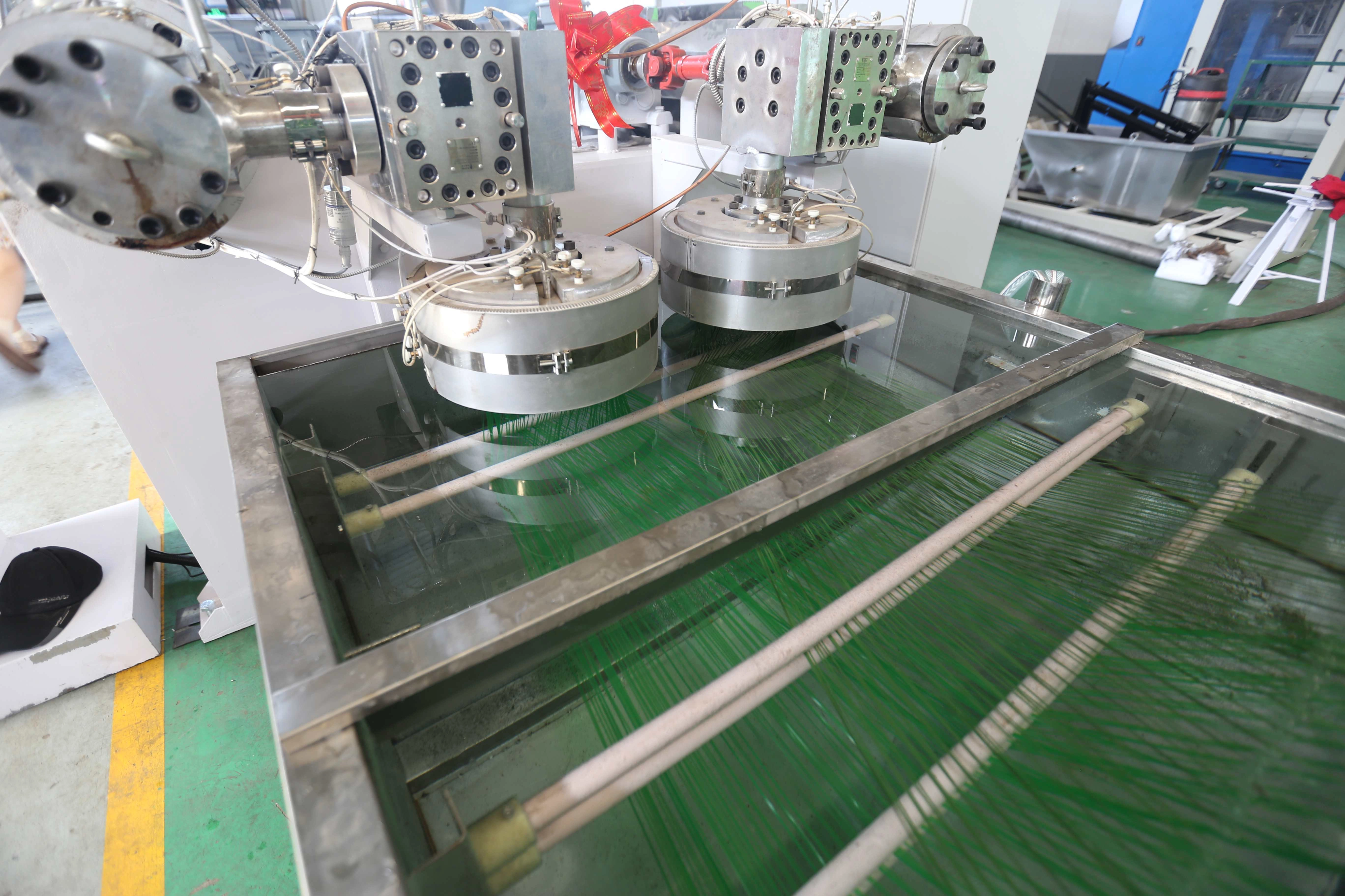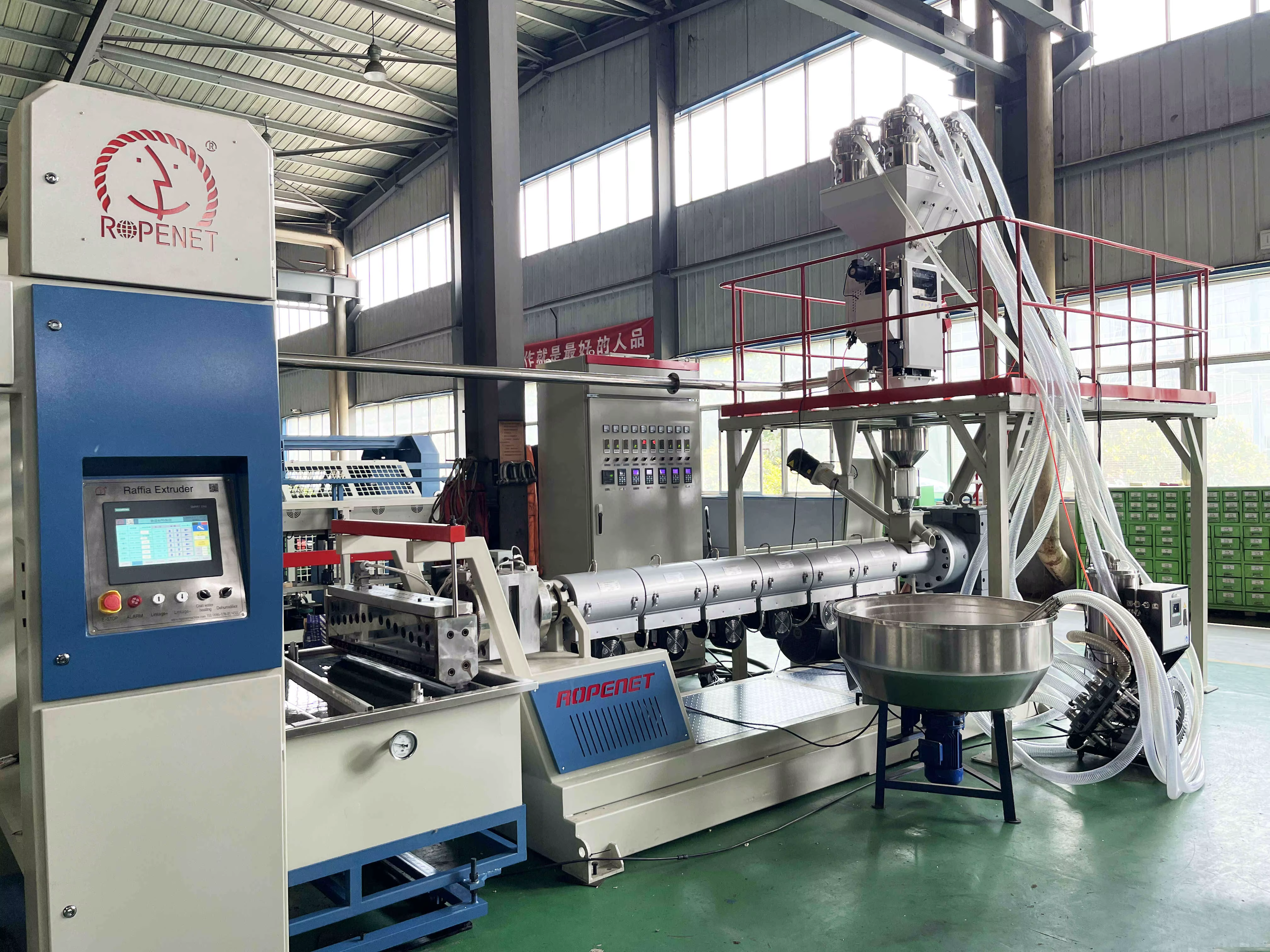 The machine can process PP (Polypropylene) and PE (Polyethylene) granules to produce high-quality monofilament yarn.