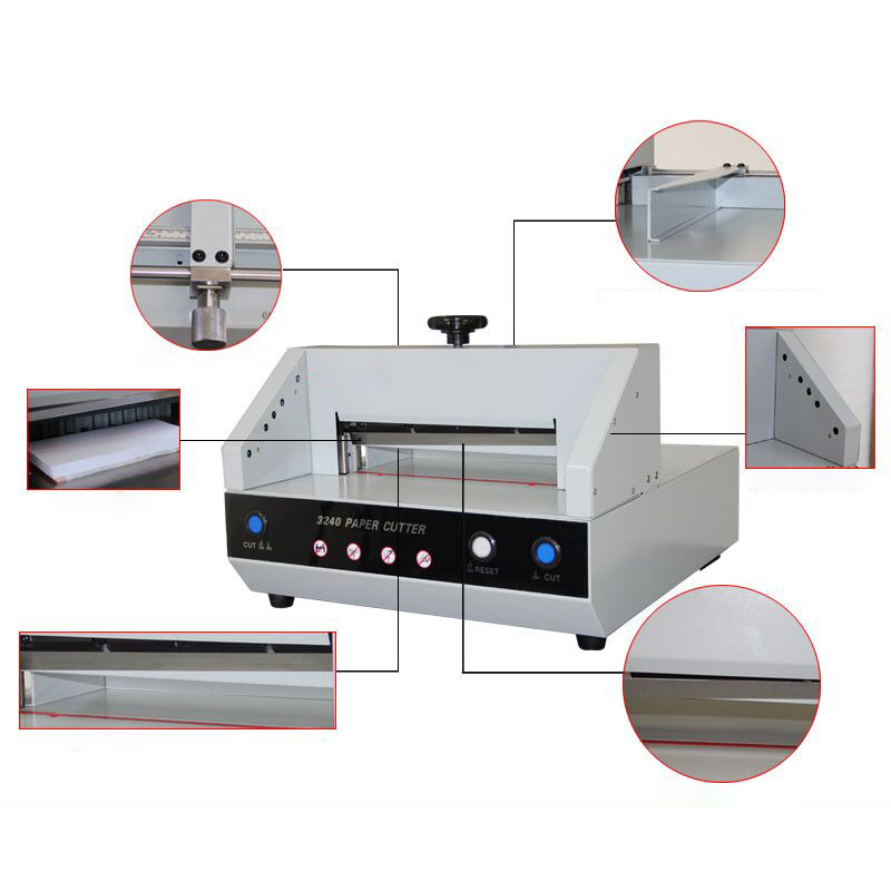 The cutting capacity of this guillotine is up to 320mm in width and 380mm in thickness.