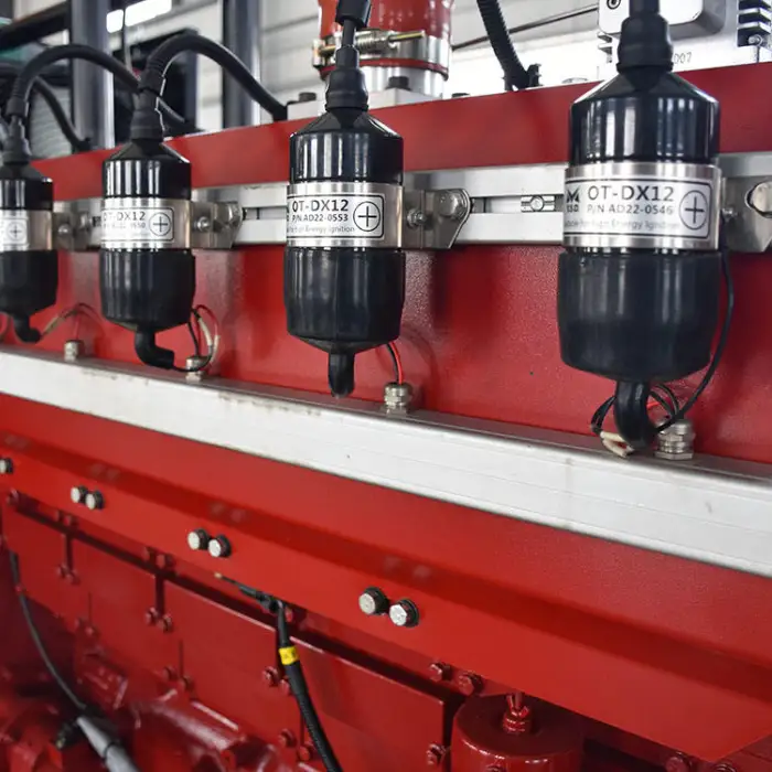 This generator set is compatible with natural gas, biogas, and LPG, providing flexibility in fuel choice.