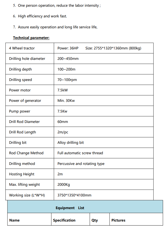 The machine is ideal for agricultural, construction, and industrial projects, including borehole drilling and foundation work.