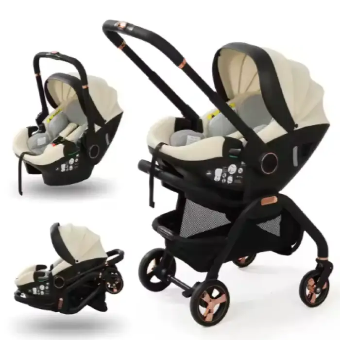 The stroller serves as a stroller, a safety seat, and a sleep basket.