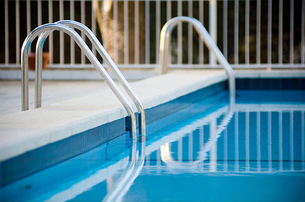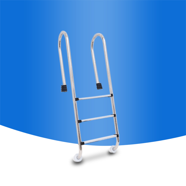 The ladder has three steps, providing easy access to and from the pool.