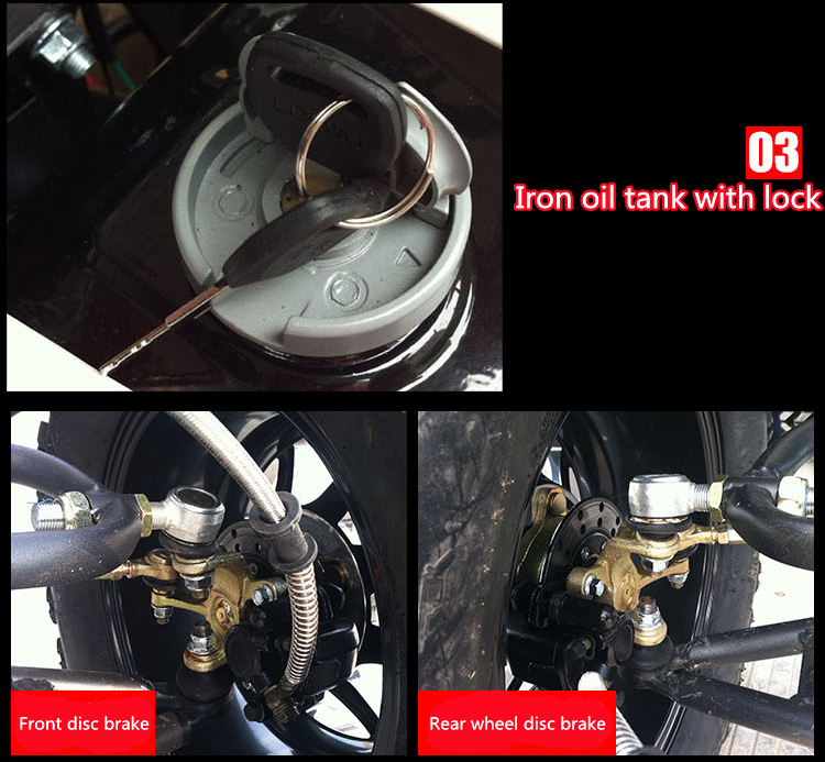 The listing indicates the ATV can use gas or diesel (confirm with seller for the chosen model). Fuel tank capacity is listed as ≤10 L.