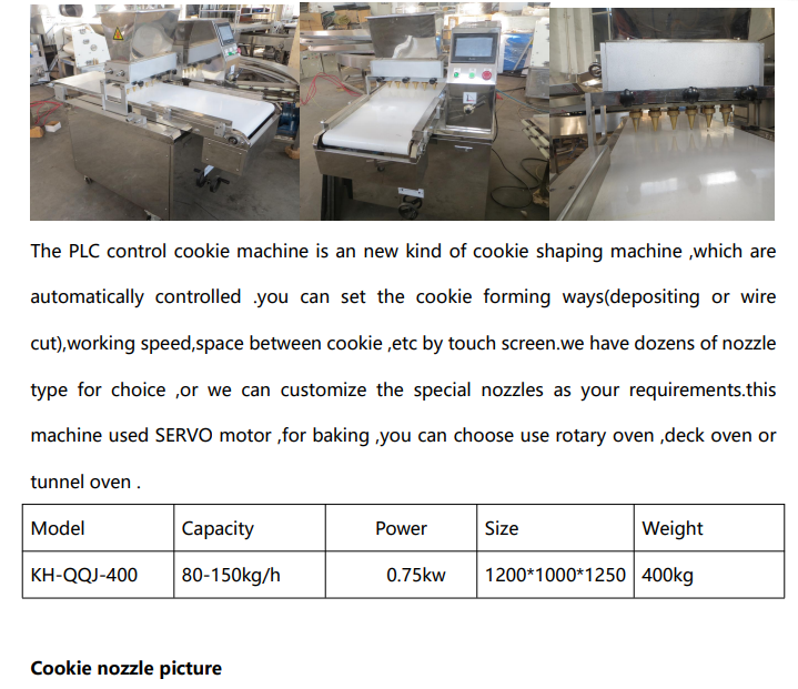 The 400 model PLC control cookies production line has a production capacity of up to 400 kg of cookies per hour, depending on the recipe and settings used.