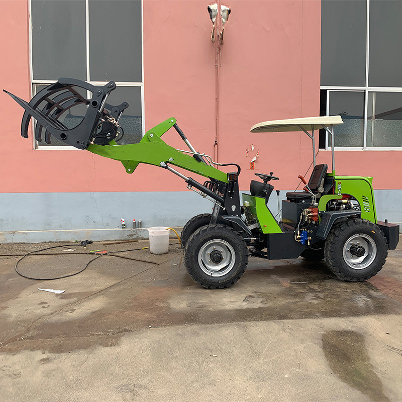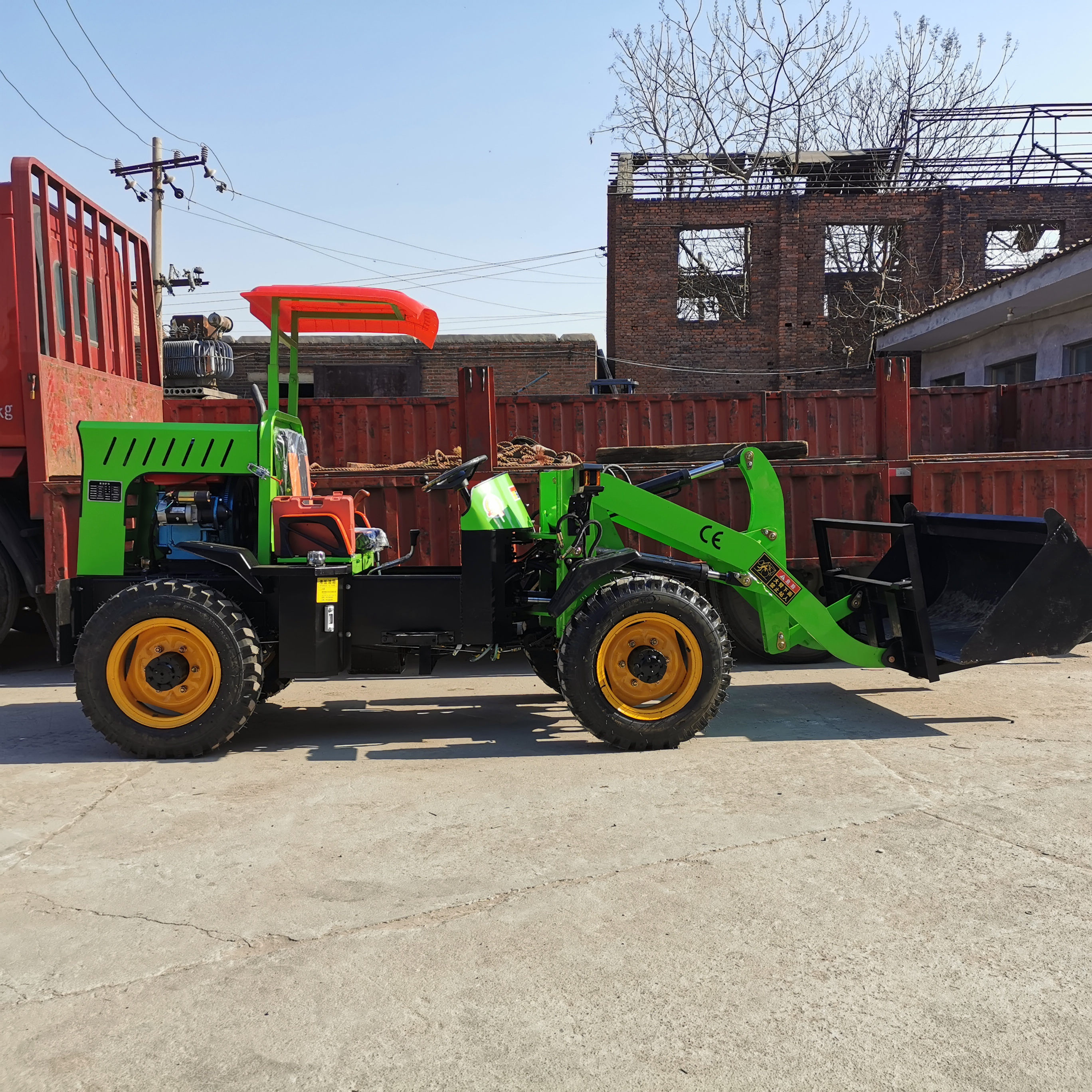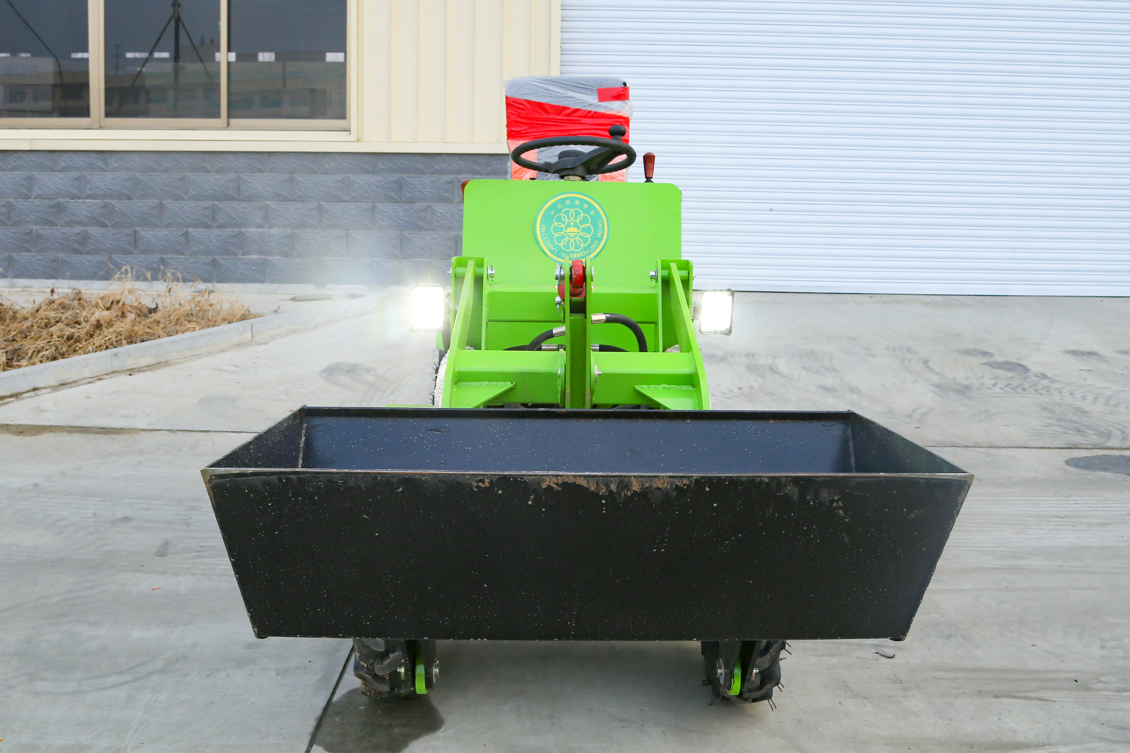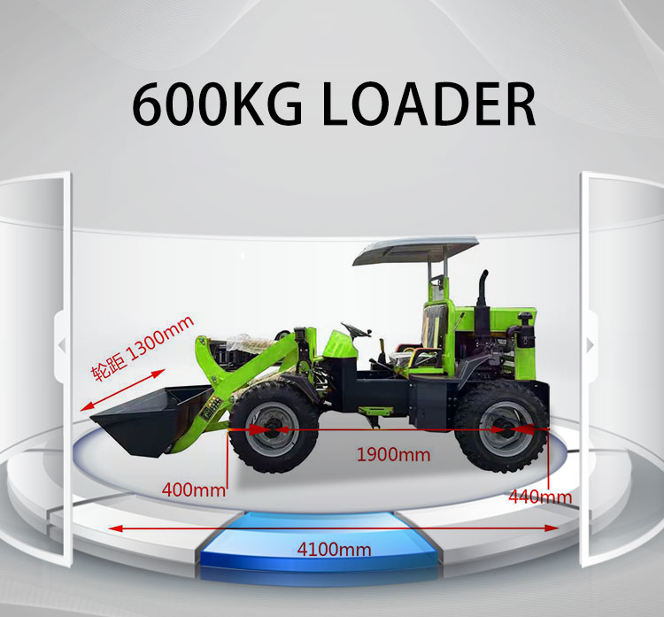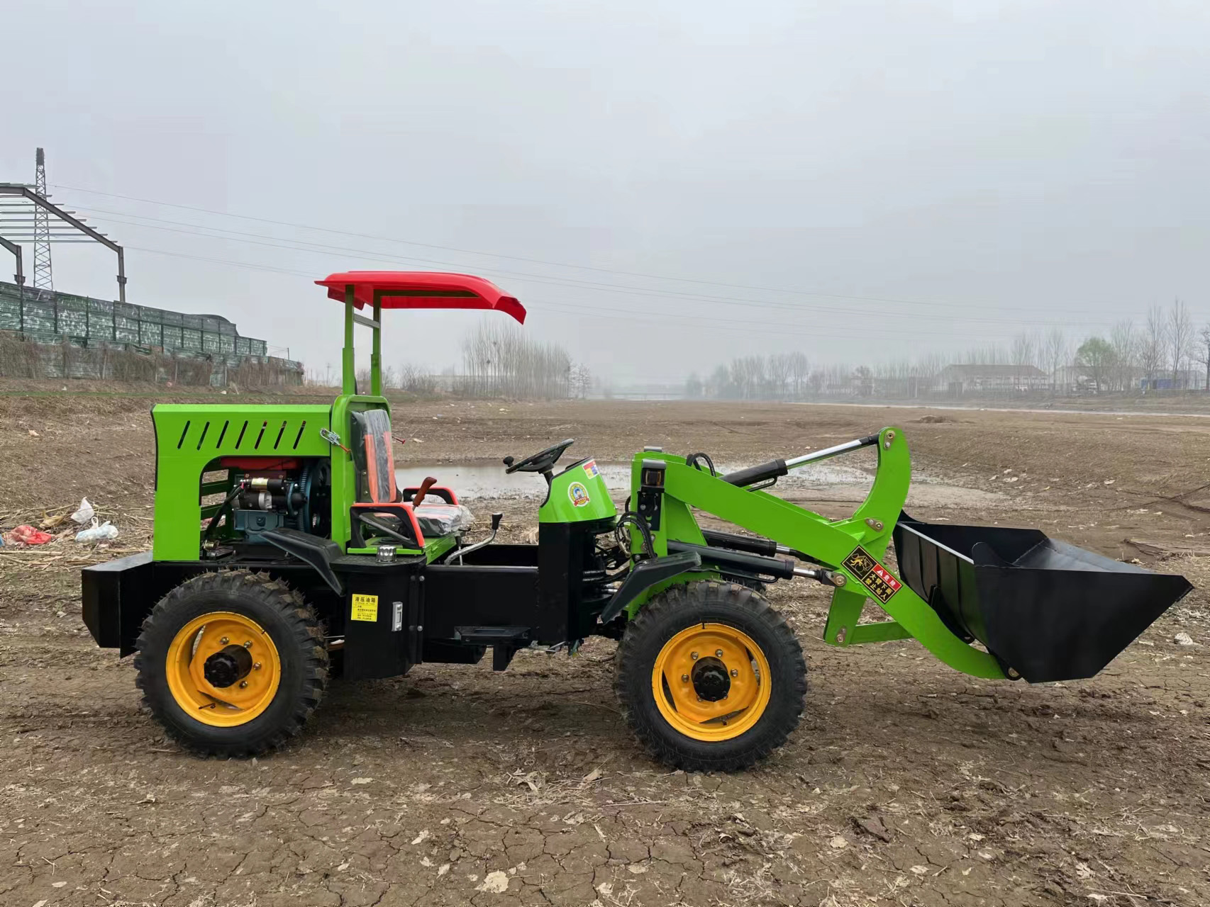 The Mini Front End Loader utilizes a hydrostatic four-wheel drive system, providing excellent traction and stability on various terrains.
