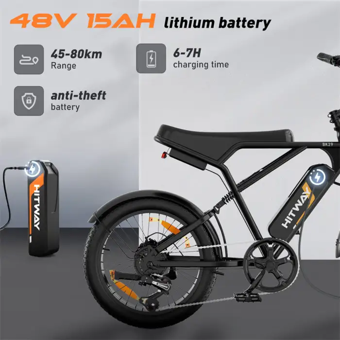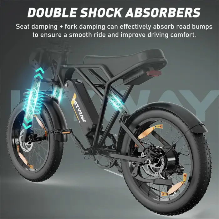 This electric mountain bike is designed for off-road riding and can handle various terrains.