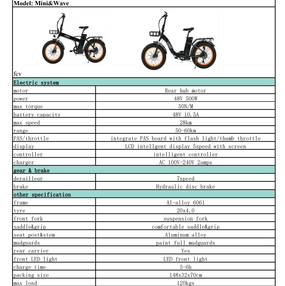 The 48V 500W Folding Electric Bike has a weight limit of 300 pounds.