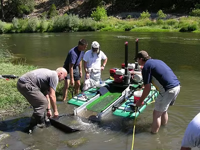 The dredge is equipped with a heavy-duty engine that ensures reliable performance.