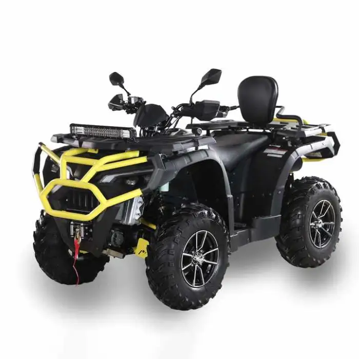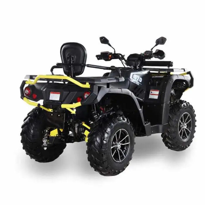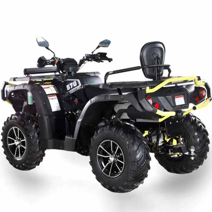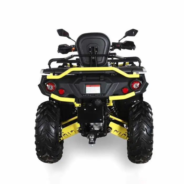 The ATV utilizes a Continuously Variable Transmission (CVT) system for smooth and efficient power delivery.