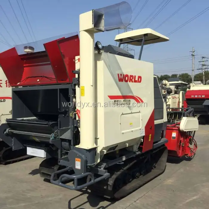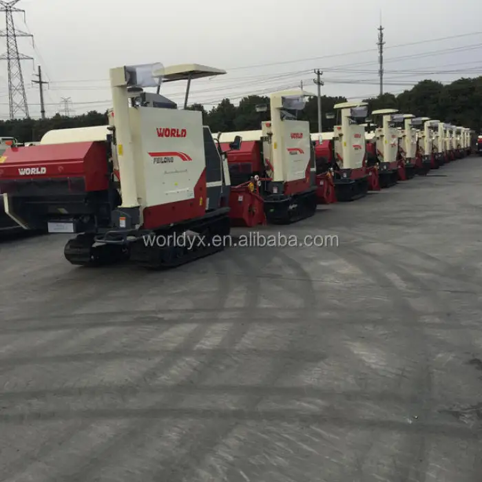 The harvester features a self-propelled full-feeding type design which enhances its harvesting efficiency.
