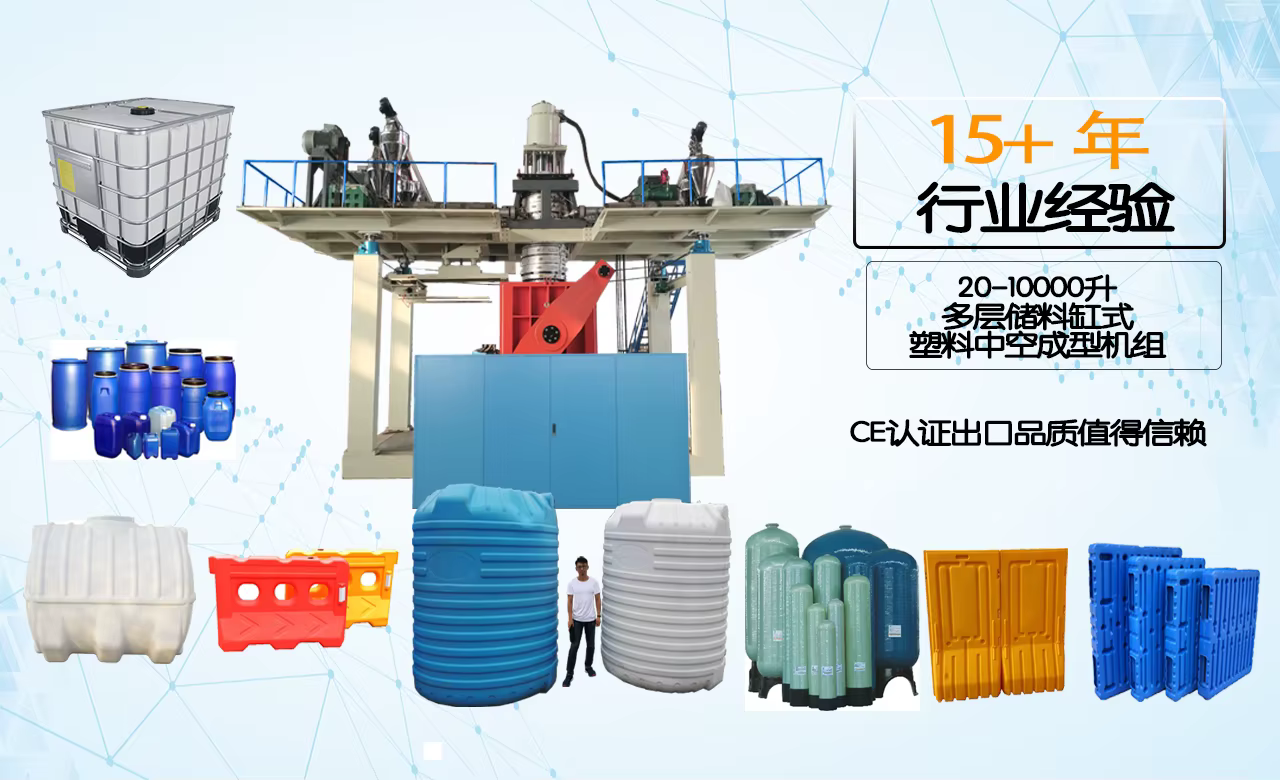 The machine is capable of producing plastic rainwater storage tanks ranging from 500 liters to 5000 liters.