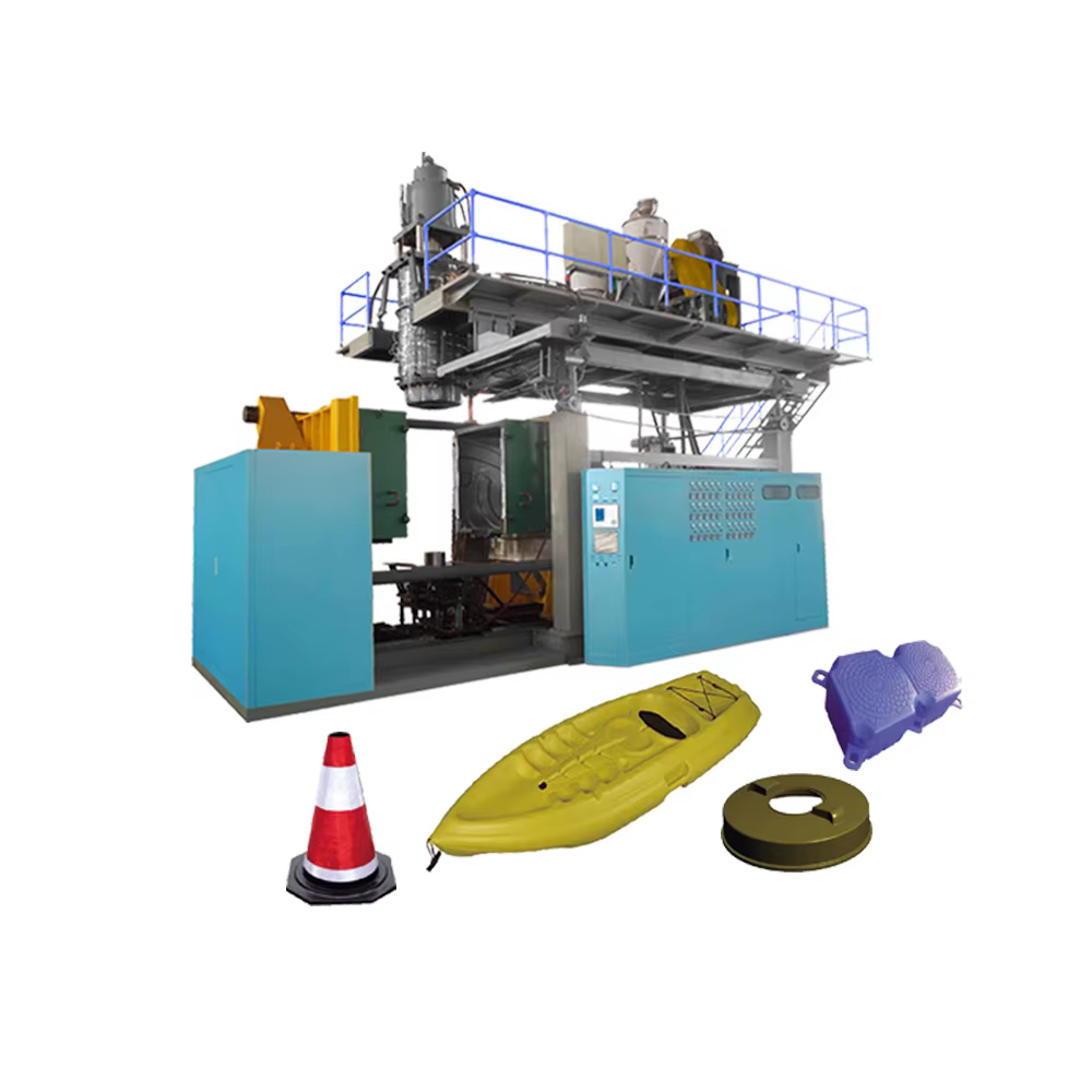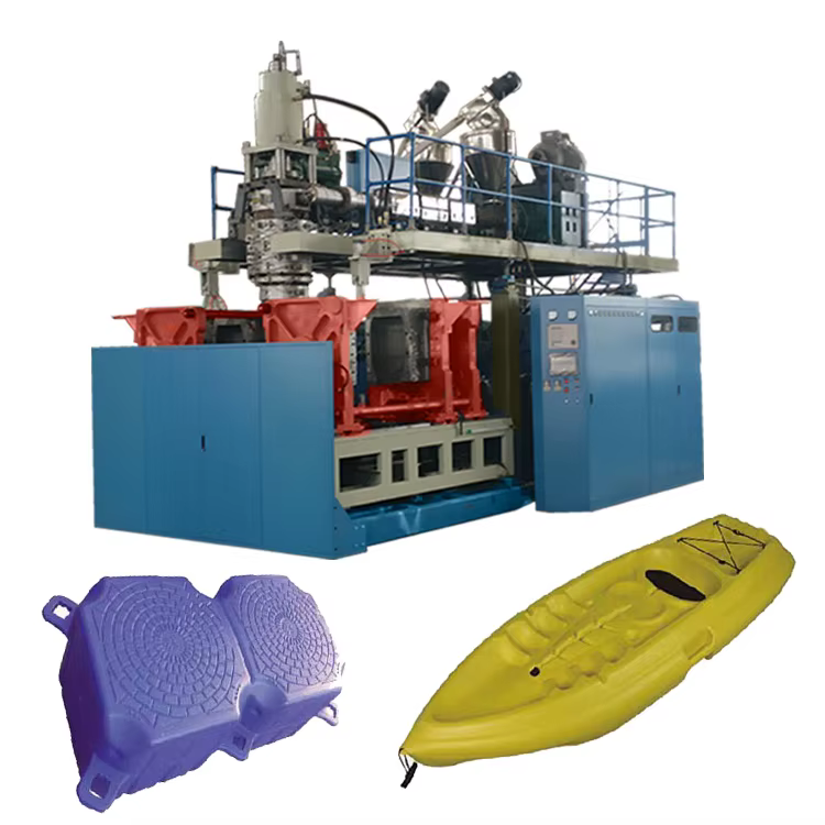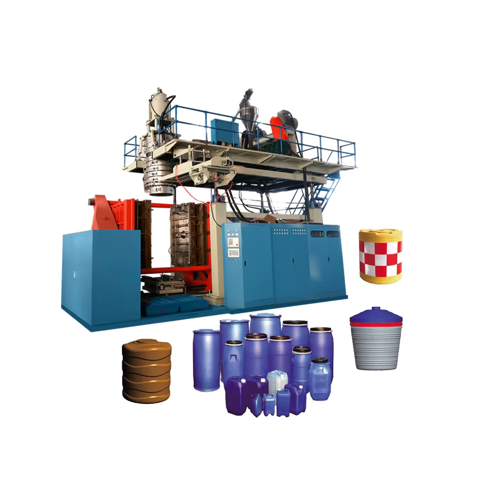 The blow molding machine has an output capacity of 600 kg/h, allowing for efficient production.
