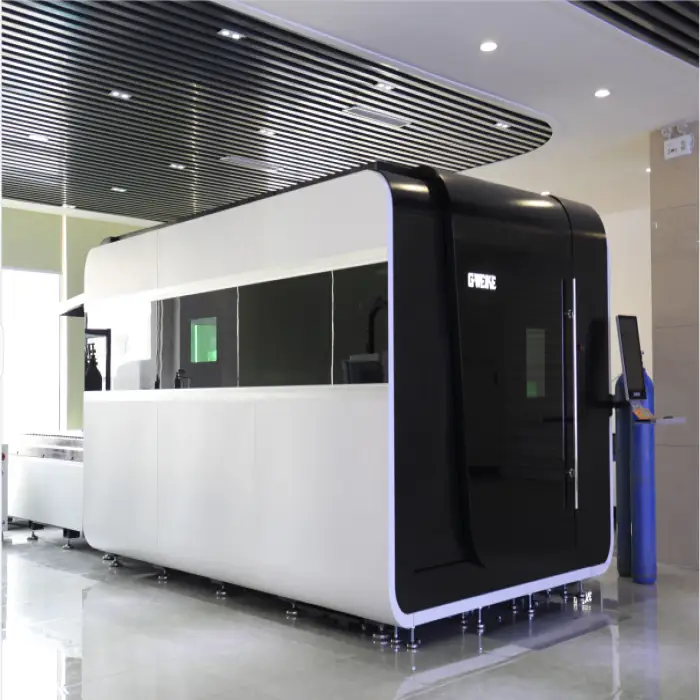 This machine uses a fiber laser, which is known for its efficiency and precision in cutting.
