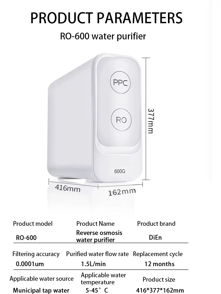 600GPD Electric RO Reverse Osmosis Water Purifier Household Tankless Water Purification System Water Tanks