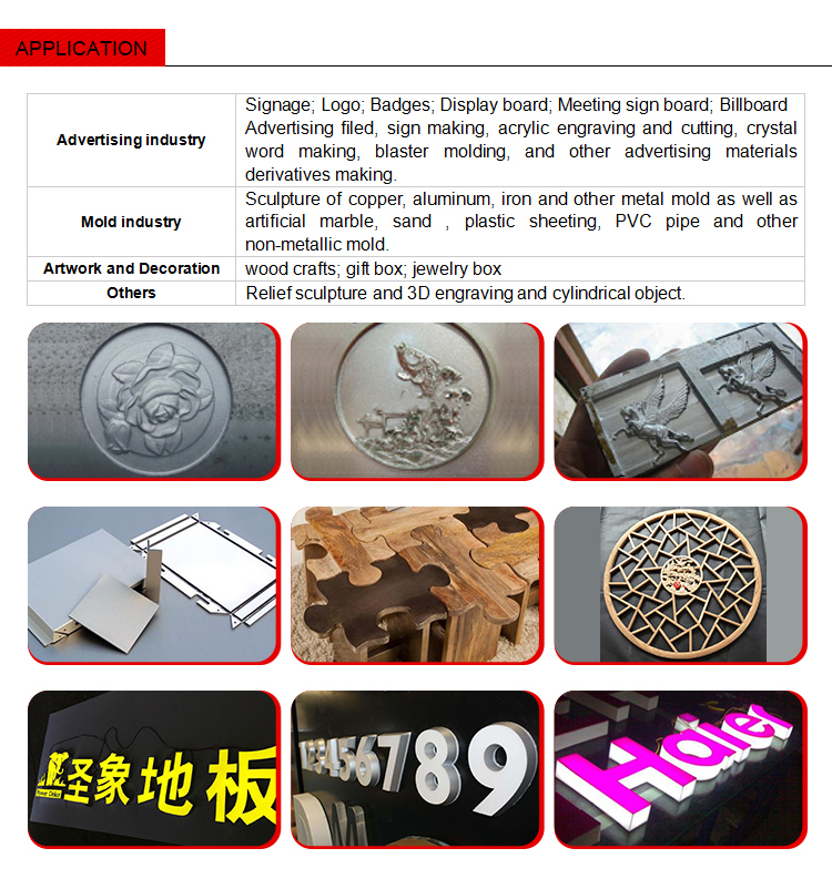 The 6090 CNC router is compatible with software such as Type3, Artcam, UG, Pro-E, Mastercam, and Ucancam.